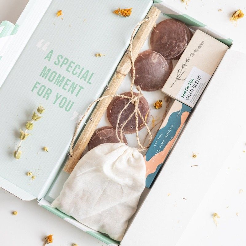 Even een momentje voor jezelf… Wie stuur jij deze originele giftset met windhanger, thee, wierrooksticks en meditatiestenen. De windhanger heeft bruine schelpen en staat prachtig in elke slaap- of woonkamer. De stenen kun je tijdens het mediteren vasthouden in één of beide handen. Sluit je ogen en adem tegelijkertijd diep in en weer uit. Zo maak je verbinding met de kracht en intentie van de steen. Het perfecte pakket om iemand tot rust te laten komen en just go with the flow.