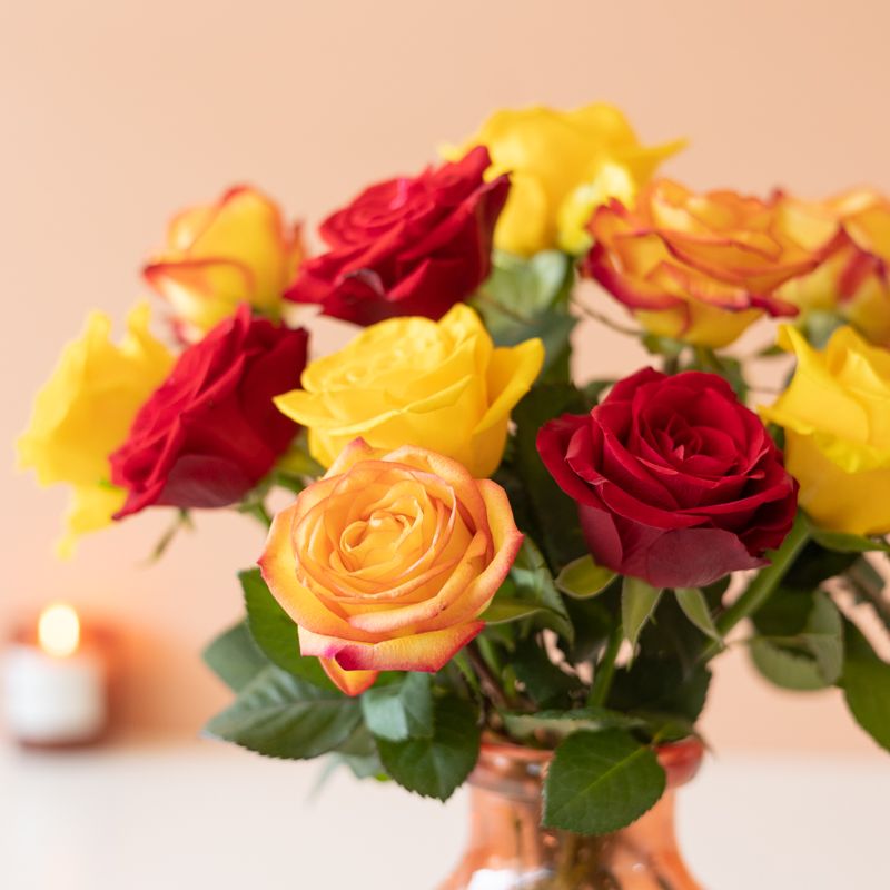 Bij wie laat jij deze bloemen bezorgen? De kleurrijke rozen worden stevig en stijlvol verpakt & bezorgd via de brievenbus. Maak het gezellig in huis!