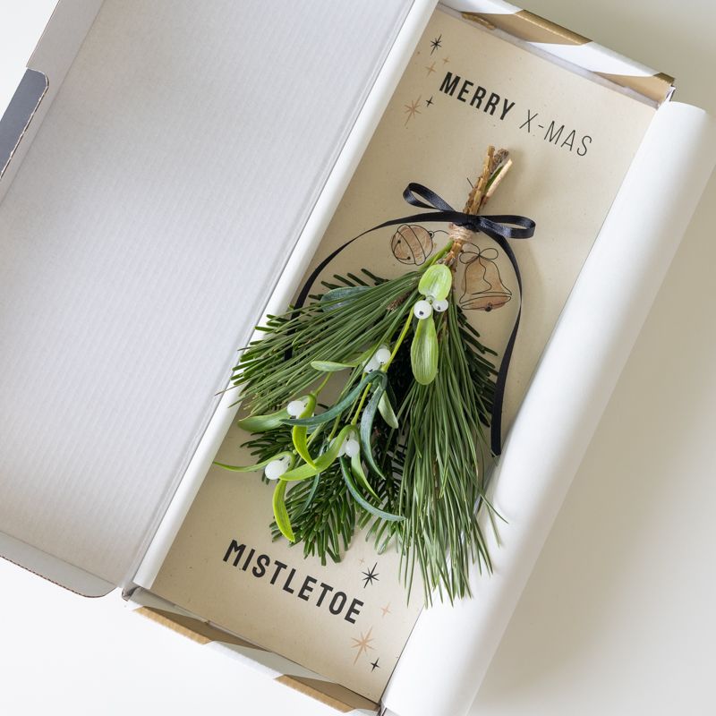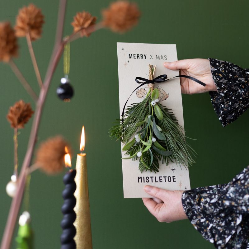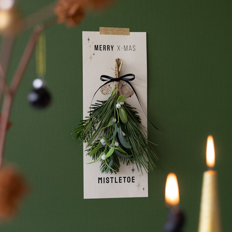 Leuk om te weten: het kaartje achter de Mistletoe is gemaakt van bloemenpapier. Dat is papier gemaakt met bloem- en plantresten.
