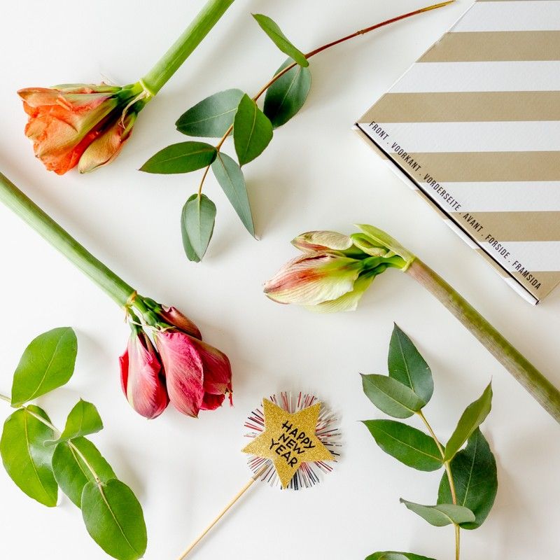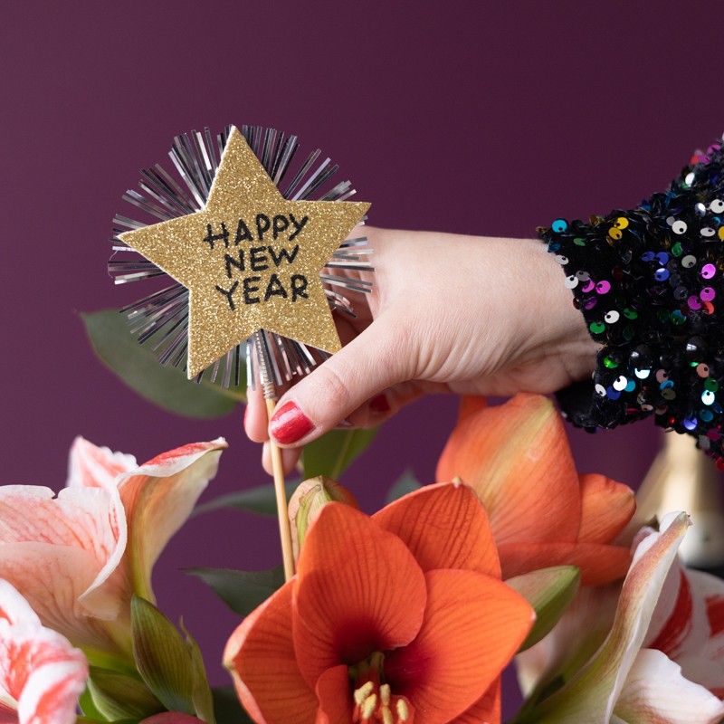 Happy New Year! 💫 Wens iemand een gelukkig 2026 met dit prachtige nieuwjaarsboeket door de brievenbus! Deze Amaryllissen met eucalyptus en feestelijke steker zorgen zeker weten voor een glimlach. Een originele nieuwjaarswens, stijlvol geleverd door de brievenbus. De Amaryllissen komen vers aan in de knop en groeien eenmaal in de vaas uit tot bloemen van formaat. Bovendien zorgt de Eucalyptus voor een heerlijk frisse geur. Wie wens jij een frisse start van het nieuwe jaar? Gewoon door de brievenbus!