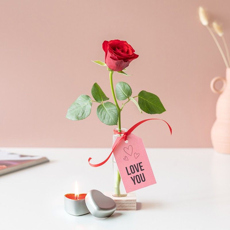 Zoveel liefde in zo'n klein pakketje. Een super origineel valentijnscadeau, dat je aan iedereen kan sturen die jij lief vindt. In het pakketje zit een echte valentijnsroos, mini vaasje, rood lint, Love You label én een kaarsje in hartvorm. Uiteraard met veel zorg verpakt en bezorgd door de brievenbus als echte liefdespost. Is dat niet cute?